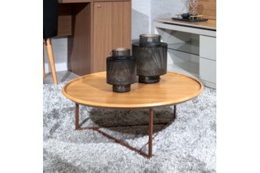 Mesa de Centro Baixa Avia Cinamomo em Pinus c/ Pés em Aço Carbono